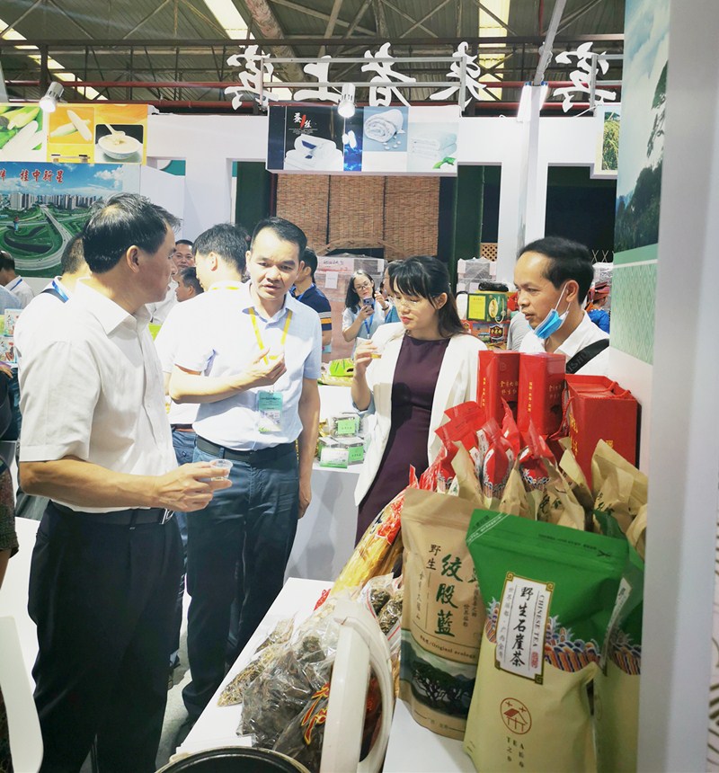 在本次农交会上,金秀县精心组织瑶山王茶业有限公司、林海茶业有限公司、大瑶山天然植物开发有限公司、瑶山源养生堂有限公司等4家优势企业,带来了茶叶、香菇、木耳等十多种名特优农产品,在来宾展区集中展示销售。