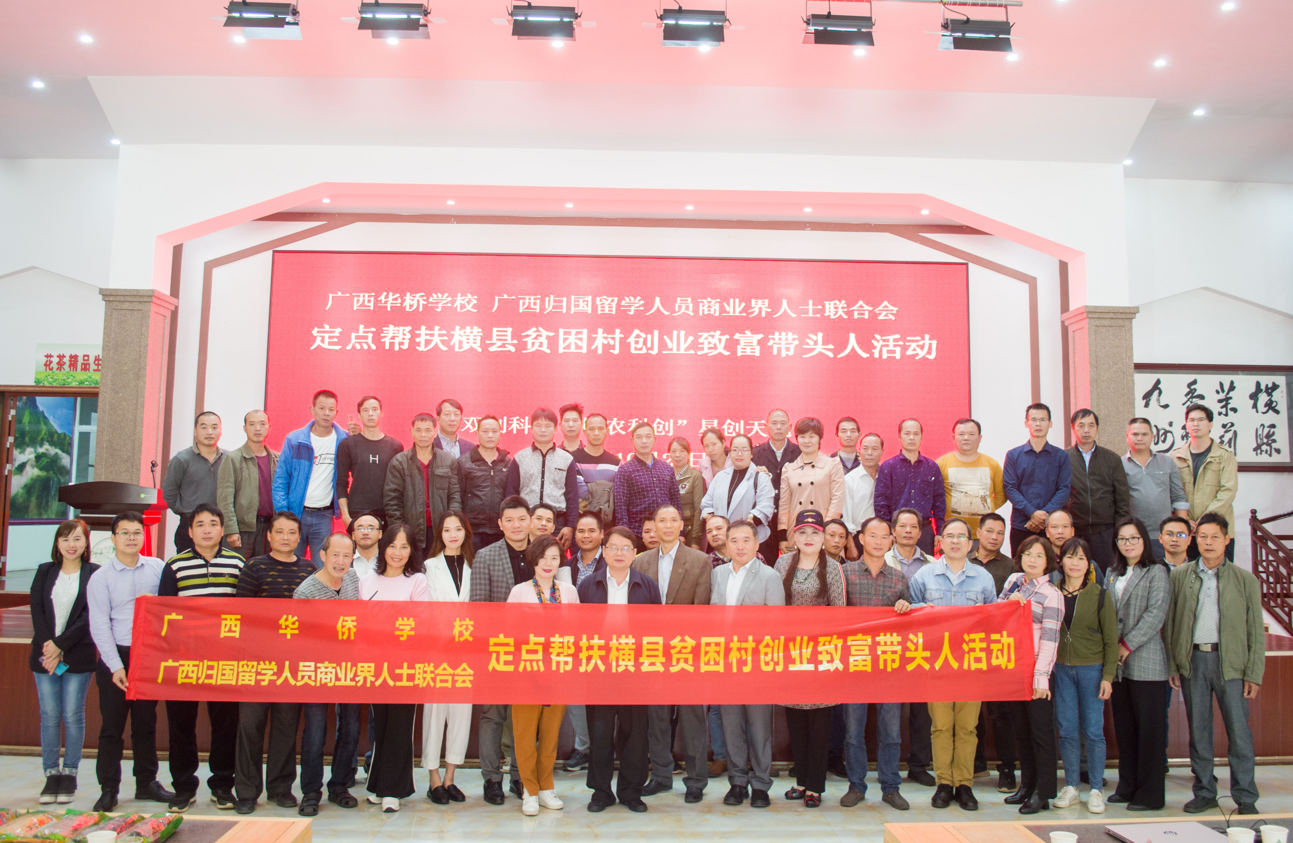 10月29日,经横县扶贫开发办公室和桂农科创星创天地(运营主体为双创科技)共同策划推动,由广西华侨学校联合广西归国留学人员商业界人士联合会组织实施的“海归双创导师团定点帮扶横县贫困村创业致富带头人"活动在横县顺利举行。横县扶贫办综合协调组驻组副组长陆世学、广西归国留学人员商会常务副会长杨慧星,横县科技局副局长黎晓,广西归国留学人员商会