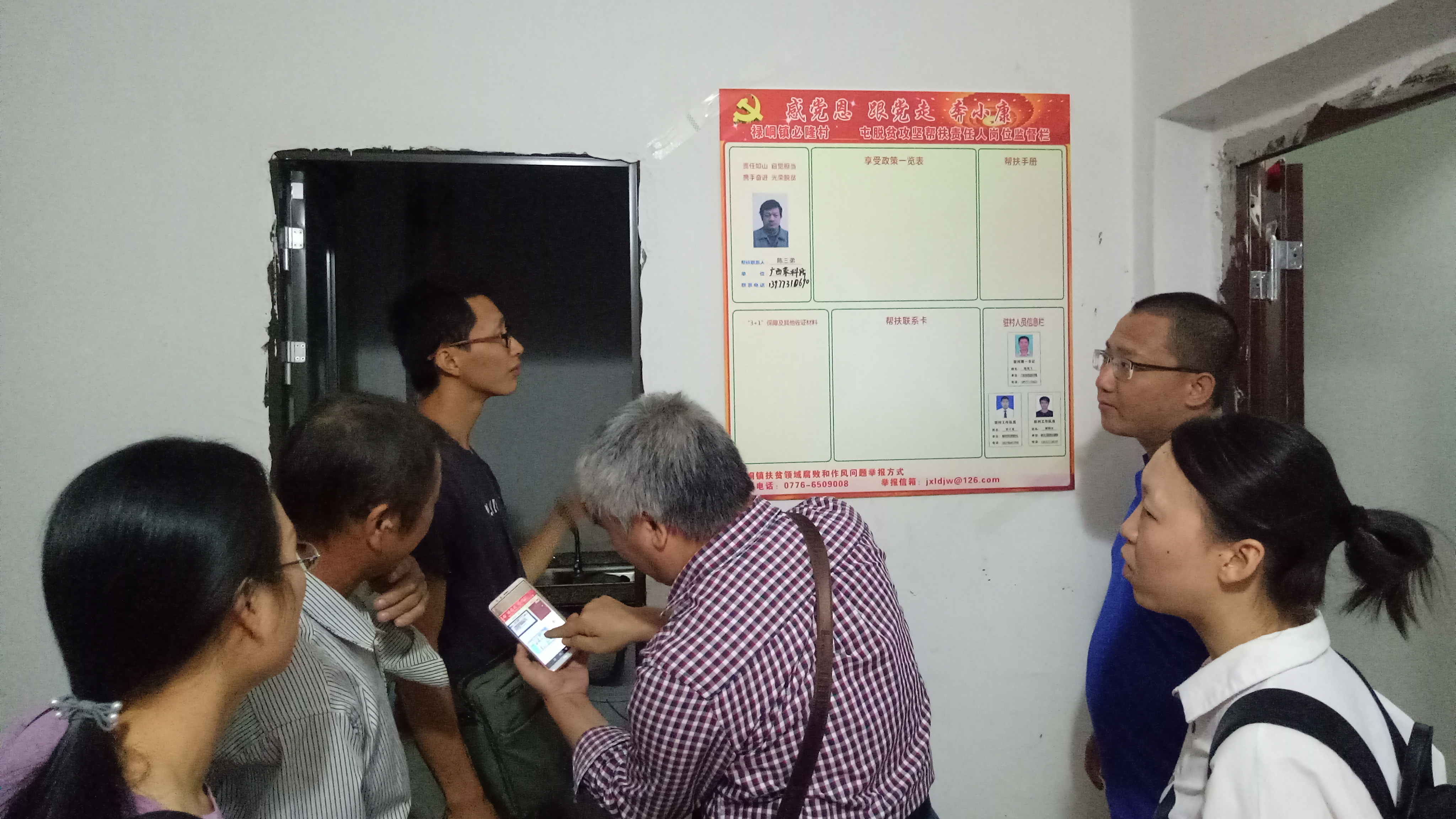 为切实发挥广西茶叶科学研究所在精准扶贫、产业扶贫方面的战斗堡垒作用,9月22日至26日,茶科所扶贫工作组前往靖西市禄峒镇必隆村扎实开展扶贫工作。 工作组进村入户与贫困户共同开展“三个一”活动;走访靖西市老乡家园的易地搬迁贫困户,了解贫困户生产生活近况,完善更新“一户一册一卡”信息,粘贴脱贫攻坚帮扶责任人岗位监督栏上墙;宣讲乡村振兴政策措施,激发群众主体意识,动员党员群众积极投身扶贫攻坚早日实现脱贫奔小康。同时,还实地调研了必隆村的山油茶示范基地的发展情况,帮助村民依托产业发展巩固脱贫成效。