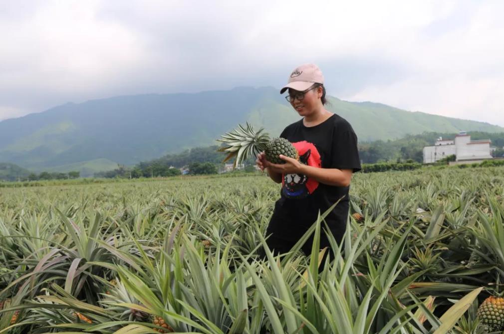 2018年初,张燕飞回乡创业。多番考察之后,她发现上林县的土壤、气候特别适合种植凤梨,因为台湾凤梨需要在热带种植,而该县刚好是北回归线穿过的地方。而且上林县创业环境好,生态环境好,是世界长寿之乡。于是,她于2018年5月在明亮镇溯浪村种上了100亩台湾凤梨。