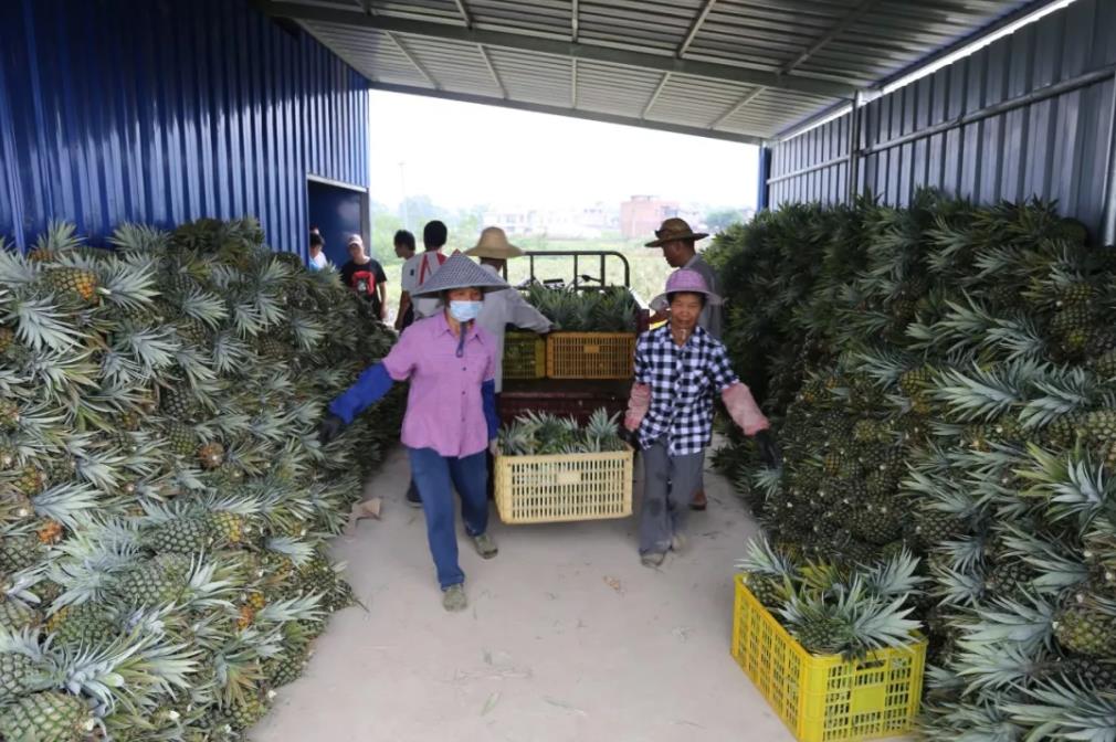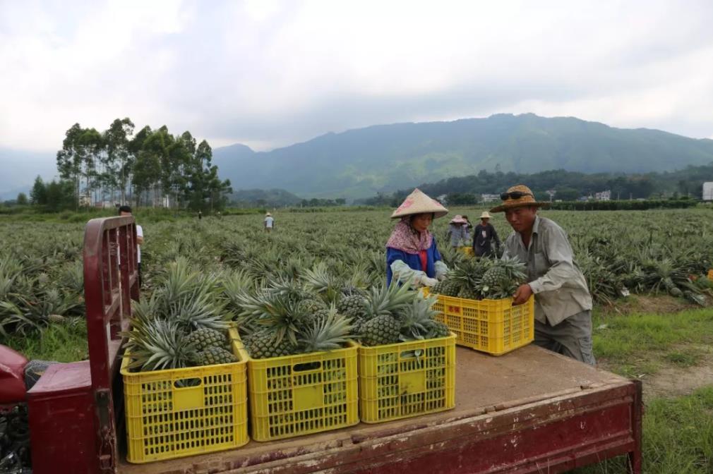 经过种植准备、种苗、后期管理14个月的种植探索,如今100亩凤梨种植基地迎来收获季。走进基地,看到一个个凤梨果面细致光滑,果型修长,成熟的凤梨在阳光的照耀下散发出淡淡果香。剖开一个凤梨品尝一下,口感香甜细腻,入口化渣。