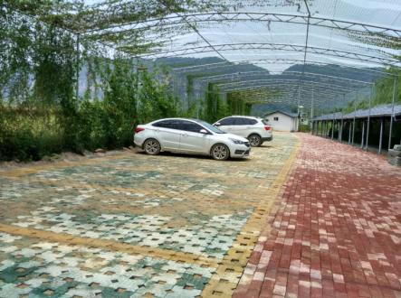三、旅游区停车场面积超过4000平方米,管理完善,布局合理,车位种植百香果遮阴,与周边景观相协调,停车场标识醒目,乡土特色突出。